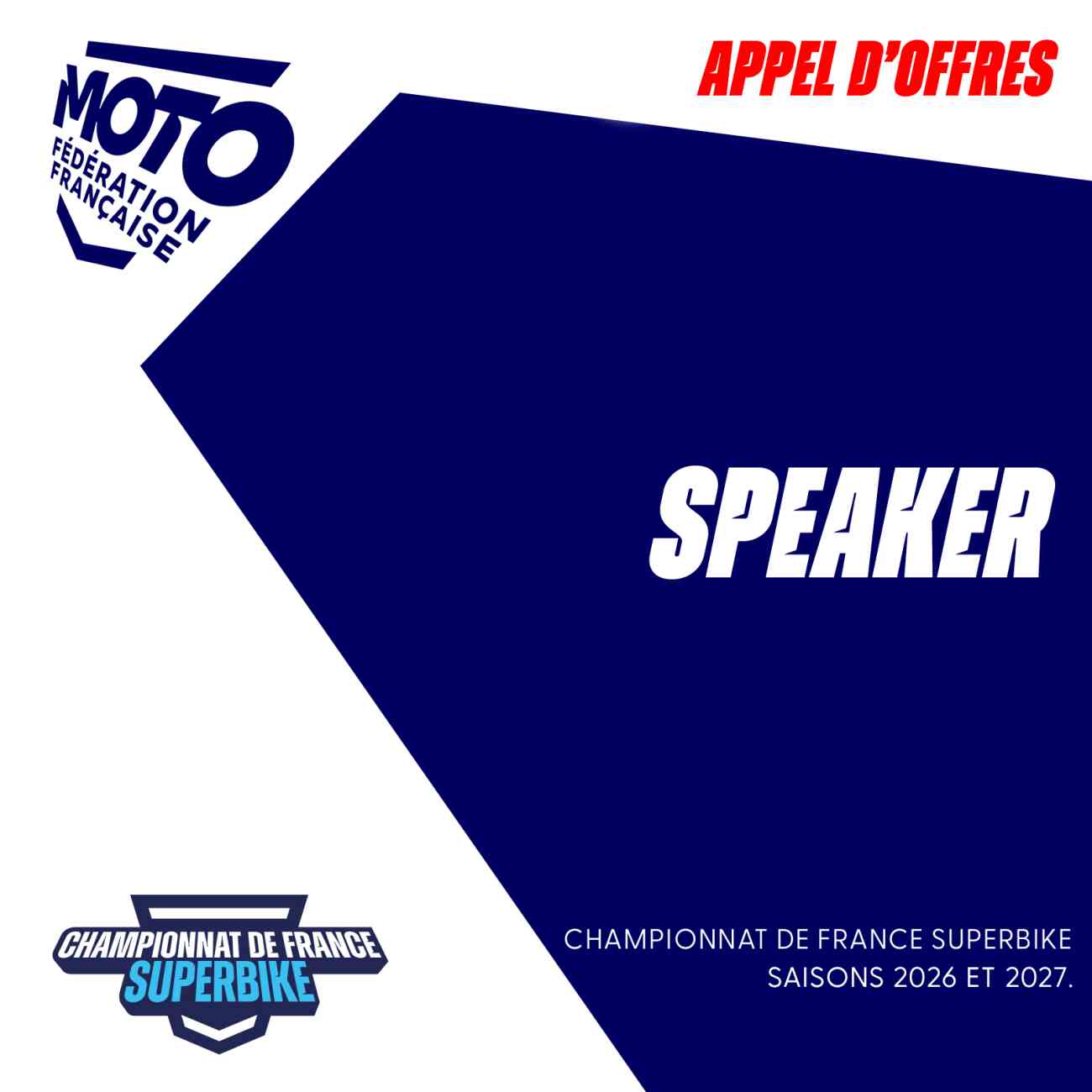 Voir toutes nos actualitésAPPEL D’OFFRES : SÉLECTION D'UN SPEAKER POUR LES SAISONS 2026 ET 2027 DU CHAMPIONNAT DE FRANCE SUPERBIKE