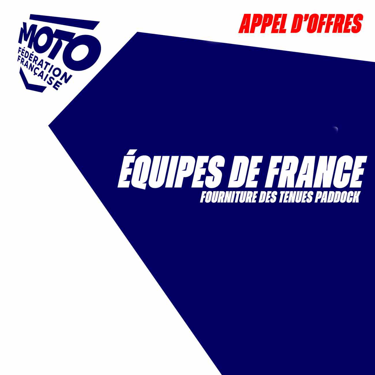 La Fédération Française de Motocyclisme (FFM) lance un appel d’offres pour la concession de l’exclusivité de la fourniture des tenues paddocks des Équipes de France qui seront engagées sur les compétitions internationales pour les saisons 2026, 2027 et 2028.