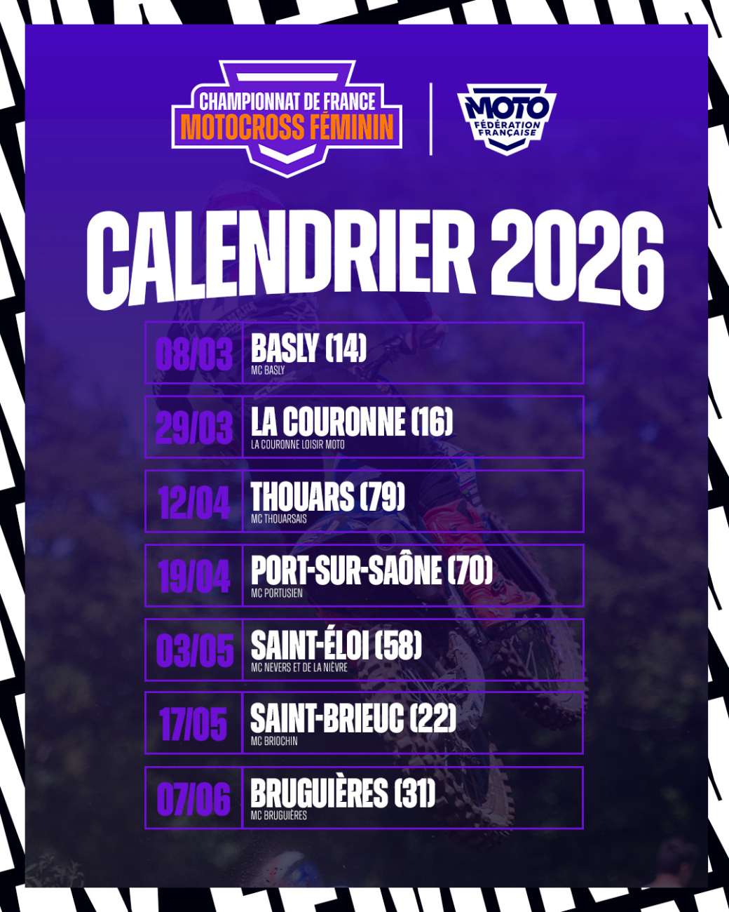 Calendrier 2026 – Championnat de France MX Féminin