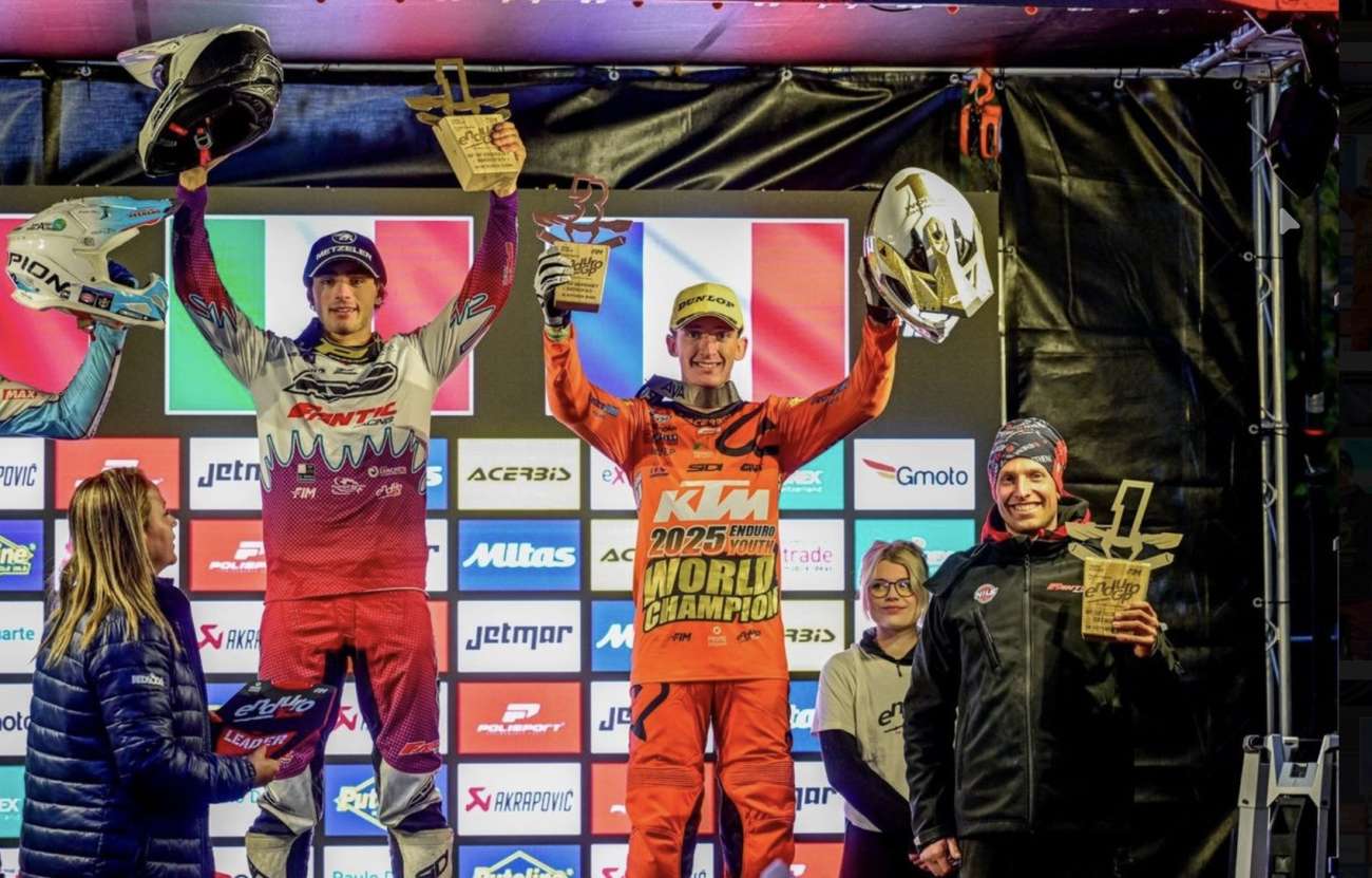 Au terme d’une saison 2025 extrêmement disputée (seulement six points séparent les premiers pilotes), Romain Dagna s’offre le titre de champion du monde Enduro Youth, tandis que Gabin Allemand conclut cette belle saison à la 4ᵉ place du classement général.