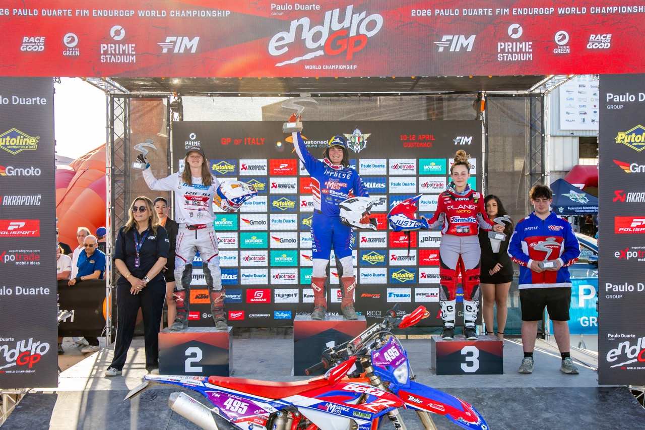 Comme chez les hommes, les pilotes françaises ont marqué les esprits ce week-end. En Italie, Justine Martel s’est montrée impériale. Au guidon de sa Beta, la Tricolore s’impose dès la première journée avec plus de 48 secondes d’avance sur l’Américaine Rachel Gutish, tandis que l’Italienne Sara Traini complète le podium. À noter également la belle 4e place de Lorna Lafont, membre de l’équipe de France Espoir Féminin. Le dimanche, Justine Martel confirme sa domination avec une nouvelle victoire. Cette fois, elle est accompagnée sur le podium par une autre Française : Marine Lemoine. Après une première journée compliquée, la pilote de l’équipe de France Espoir Féminin rebondit parfaitement pour s’offrir la 2e place, devant Rachel Gutish.