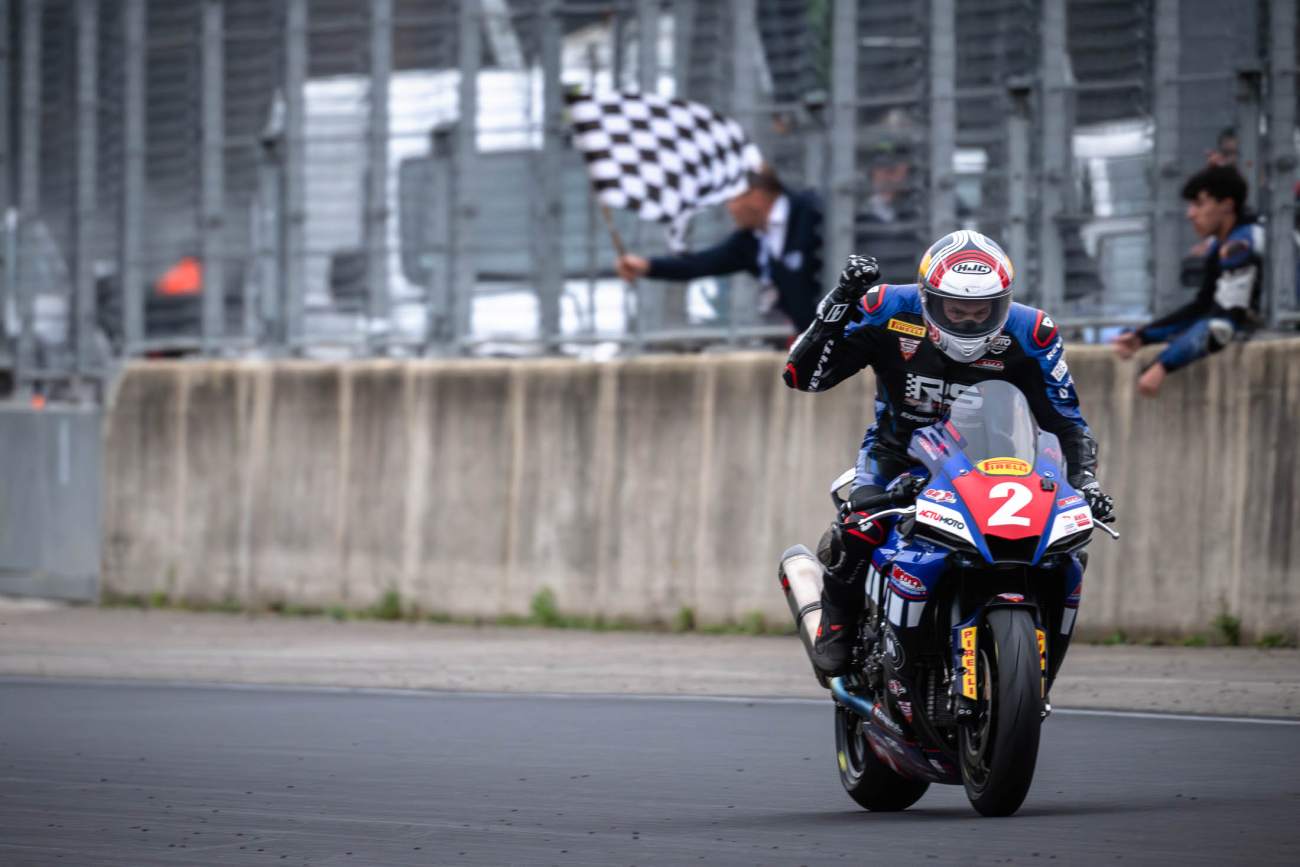 Tony Guerrero (Yamaha) est la confirmation du week-end. Déjà 4ème des deux courses à Nogaro, il monte encore d’un cran — 3ème puis 2ème — et s’installe à la 3ème place du classement général scratch avec 62 points. Le premier pilote non-Production au scratch.