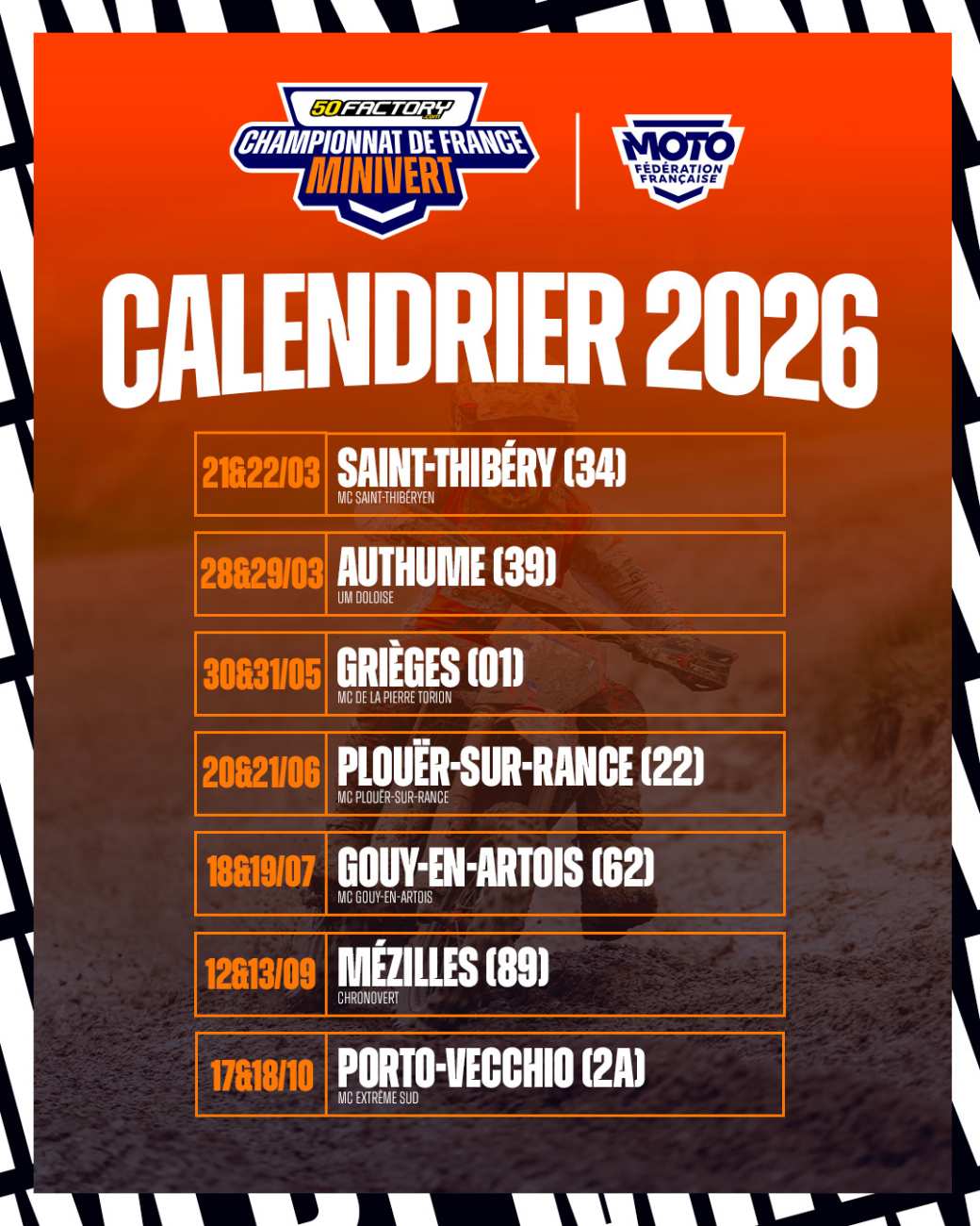 Calendrier 2026 - Championnat de France Minivert